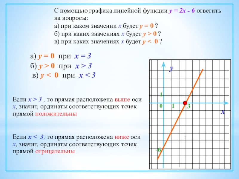 С помощью графика линейной функции у = 2х - 6 ответить на вопросы: а) при каком значении