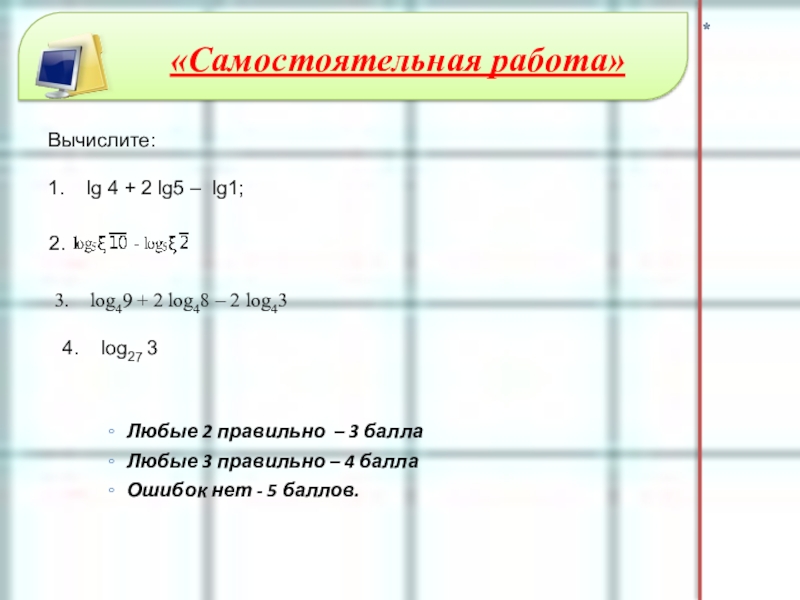5) log3 8,1 + log3 10.