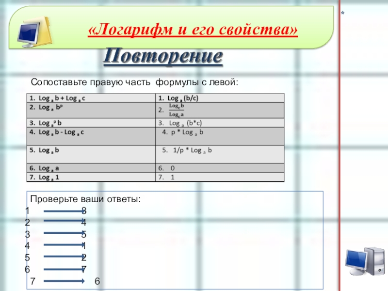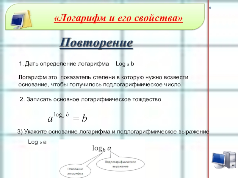 2. Записать основное логарифмическое тождество