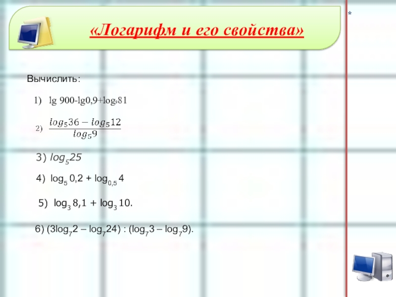 6) (3log72 – log724) : (log73 – log79).