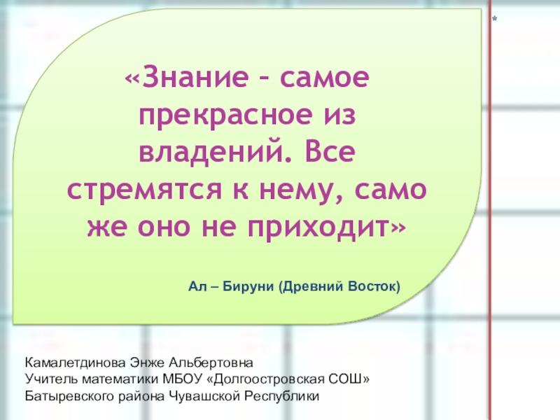 Учитель математики МБОУ «Долгоостровская СОШ»