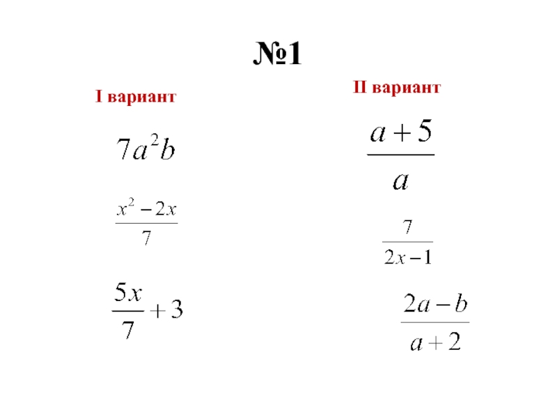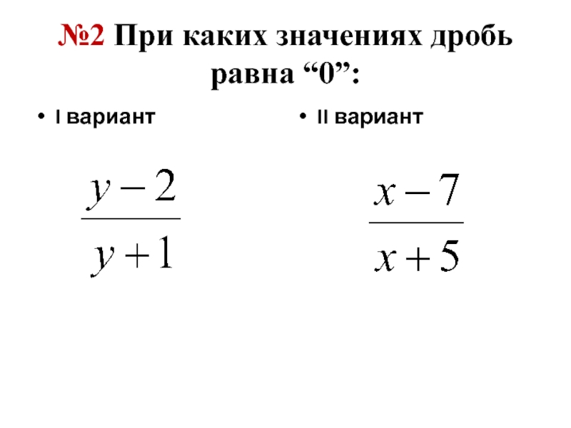 №2 При каких значениях дробь равна “0”:I вариантII вариант