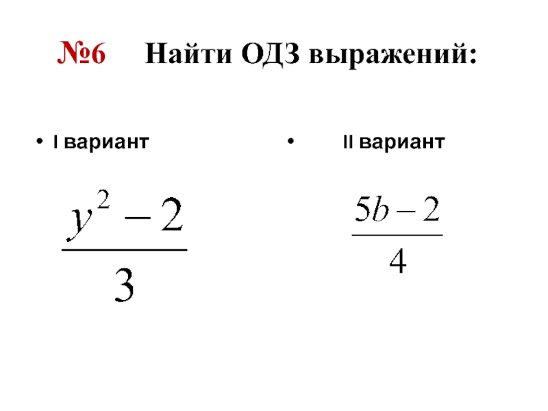 №6   Найти ОДЗ выражений:I вариант    II вариант