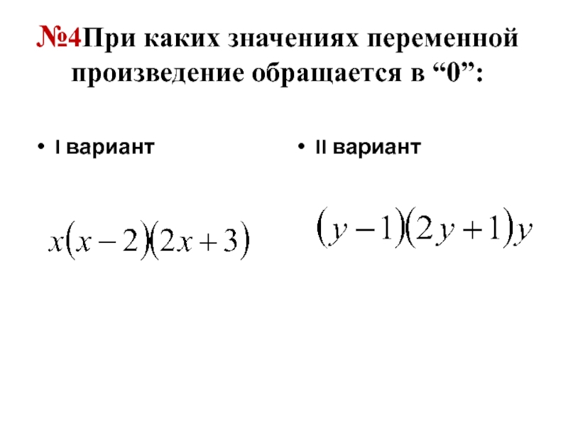 №4При каких значениях переменной произведение обращается в “0”:I вариантII вариант