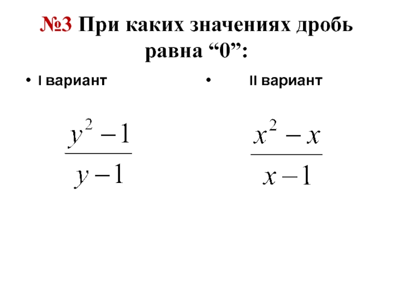 Слайд 5№3 При каких значениях дробь равна “0”: