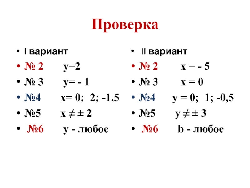 ПроверкаI вариант№ 2    y=2№ 3    у= - 1№4