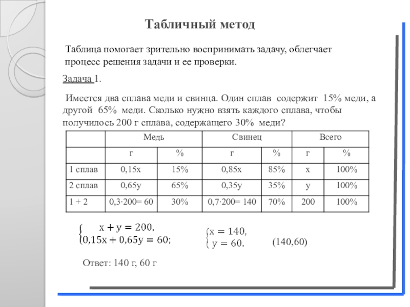 Таблица помогает зрительно воспринимать задачу, облегчает процесс решения задачи и ее проверки.