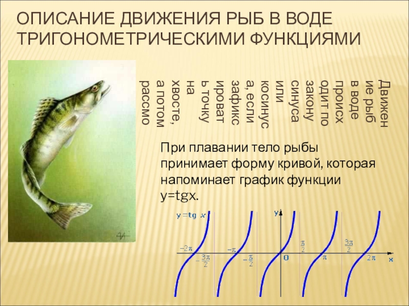 При плавании тело рыбы принимает форму кривой, которая напоминает график функции y=tgx.