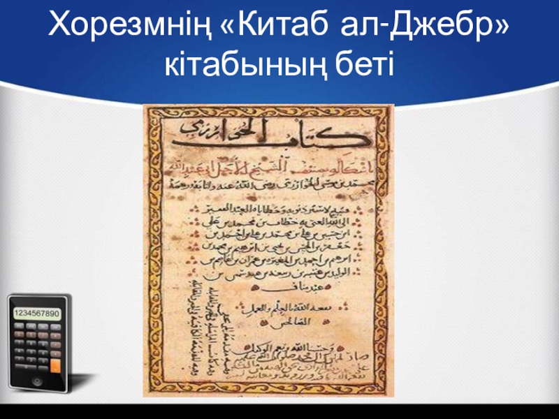 Слайд 6Хорезмнің «Китаб ал-Джебр» кітабының беті