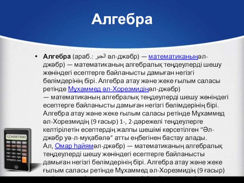 Презентация, доклад по алгебре на тему Алгебра тарихы