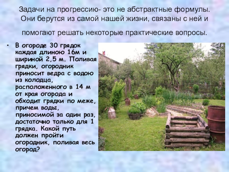 Слайд 17Задачи на прогрессию- это не абстрактные формулы. Они берутся из самой