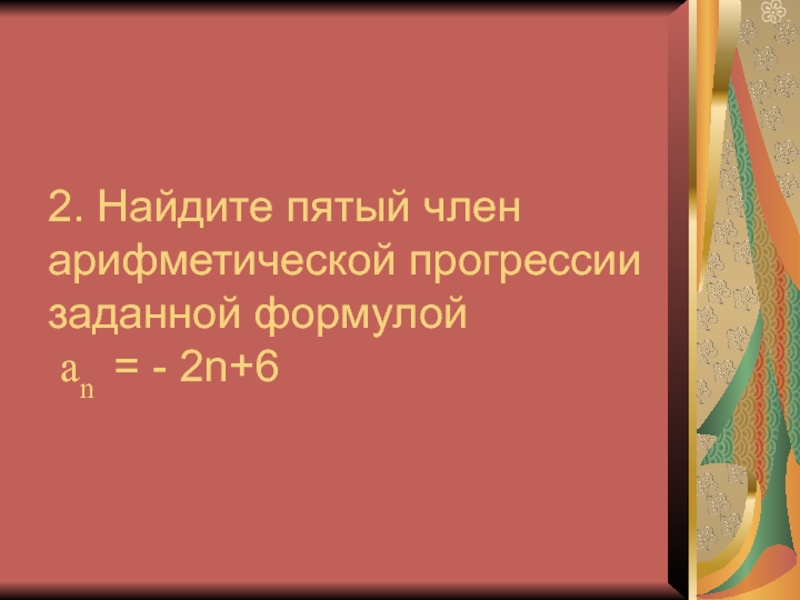 2. Найдите пятый член арифметической прогрессии заданной формулой  аn = - 2n+6