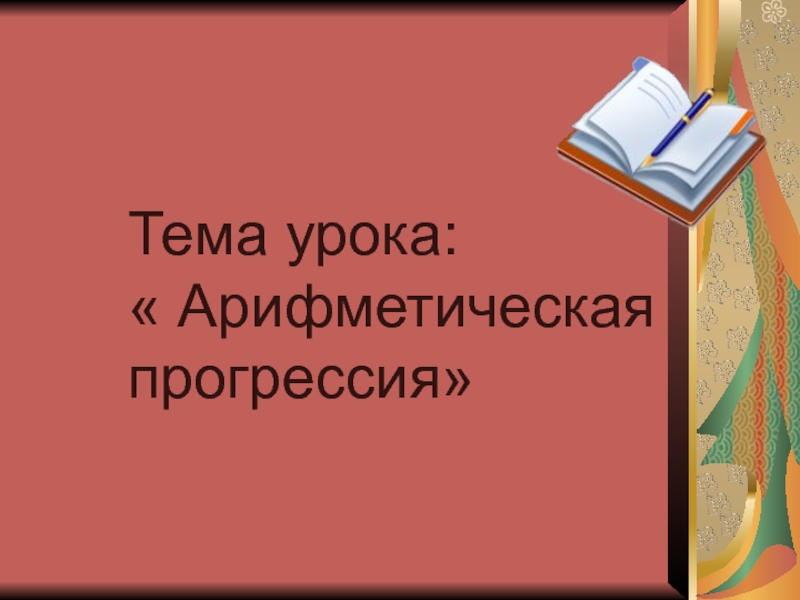 Слайд 1Тема урока: « Арифметическая прогрессия»
