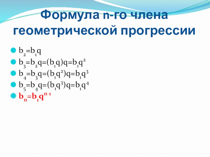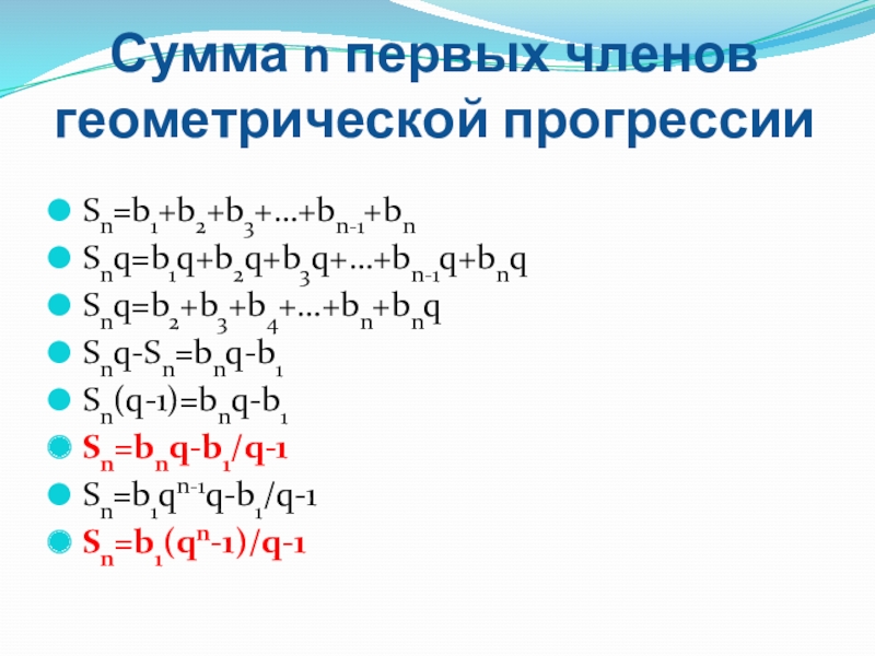 Слайд 10Сумма n первых членов геометрической прогрессии