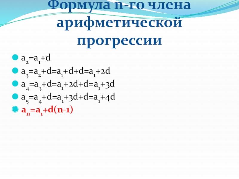Слайд 6Формула суммы n первых членов арифметической прогрессии