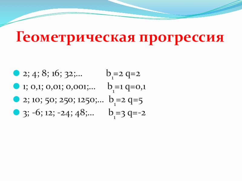 1; 0,1; 0,01; 0,001;… b1=1 q=0,1