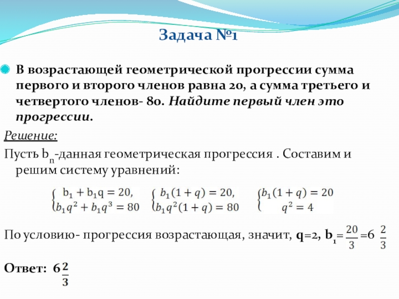 Пусть bn-данная геометрическая прогрессия . Составим и решим систему уравнений:
