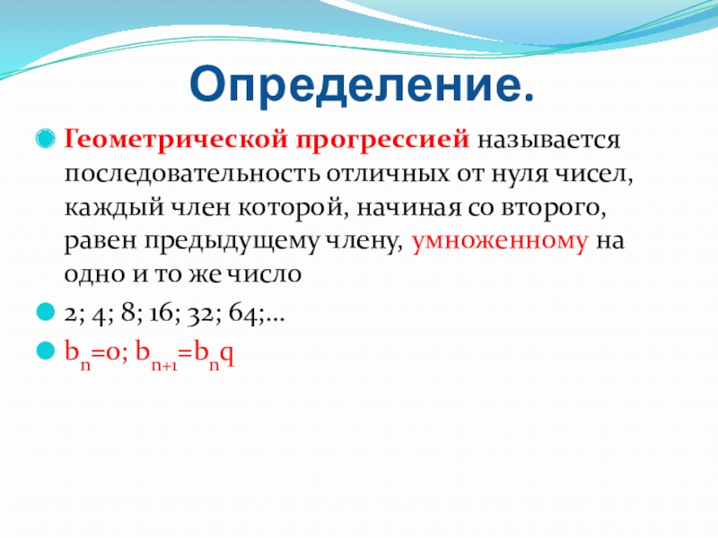 Геометрической прогрессией называется последовательность отличных от нуля чисел, каждый член которой,