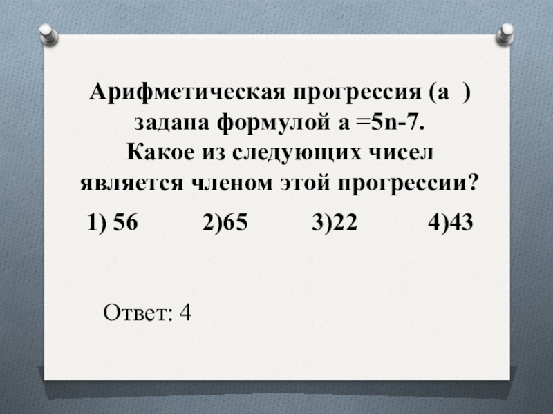 Слайд 12Арифметическая прогрессия (a ) задана формулой a =5n-7.