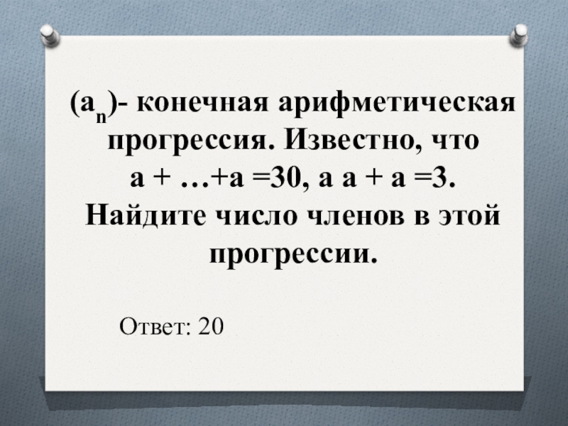Слайд 16(an)- конечная арифметическая прогрессия. Известно, что