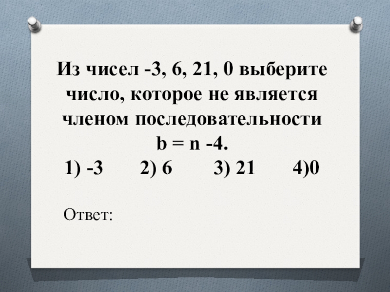 Слайд 8Из чисел -3, 6, 21, 0 выберите число, которое не является