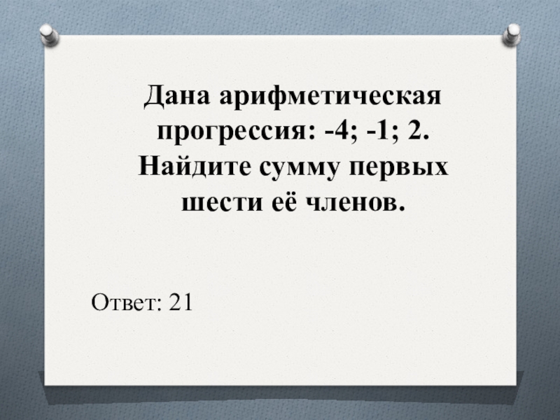 Слайд 15Дана арифметическая прогрессия: -4; -1; 2.