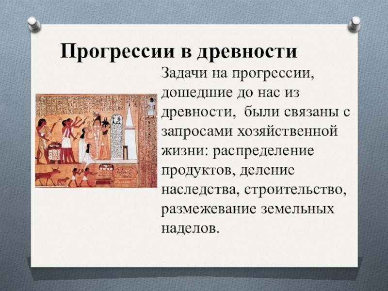 Задачи на прогрессии, дошедшие до нас из древности, были