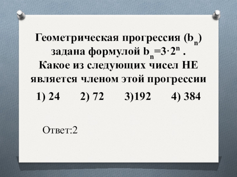 Слайд 24Геометрическая прогрессия (bn) задана условиями: