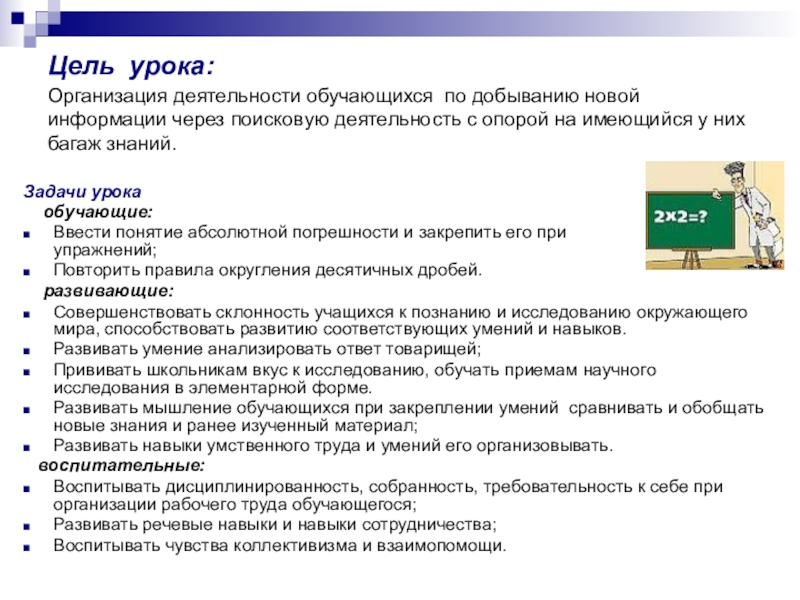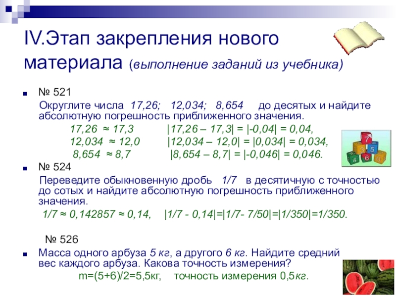 Ввести понятие абсолютной погрешности и закрепить его при выполнении упражнений;
