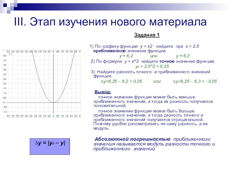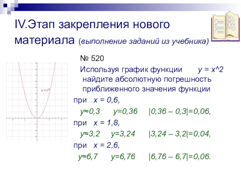 Используя график функции y = x^2 найдите абсолютную погрешность приближенного значения функции