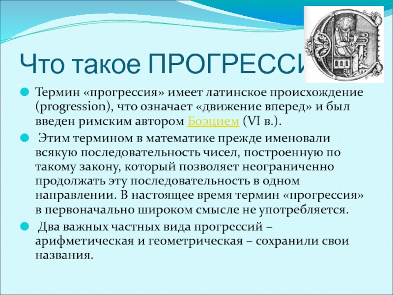Что такое ПРОГРЕССИЯ?Термин «прогрессия» имеет латинское происхождение (progression), что означает «движение вперед» и был введен римским автором