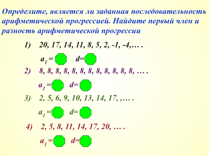 3) ÷(аn) -20, -15, -10, -5,… .