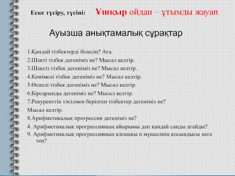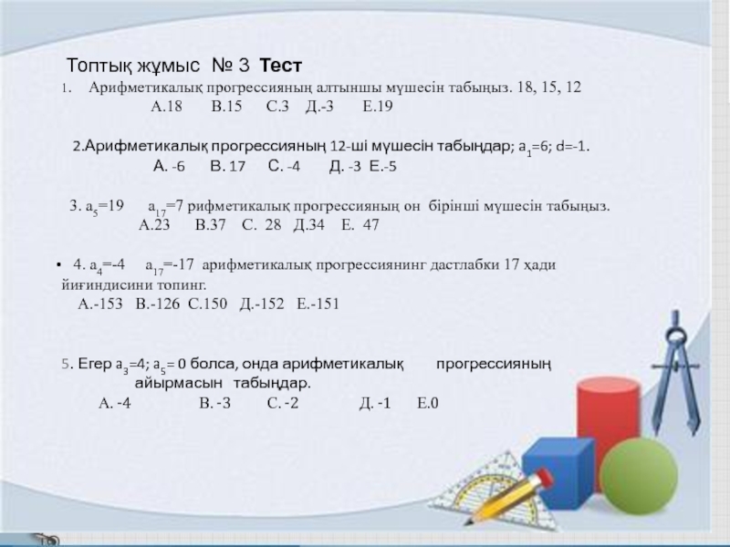 Бүл есеп арифметикалық прогрессияға мисал бола ала ма?