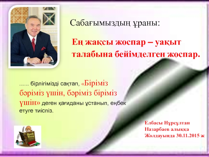 ...... бірлігімізді сақтап, «Біріміз бәріміз үшін, бәріміз біріміз үшін» деген қағиданы ұстанып, еңбек етуге тиіспіз.