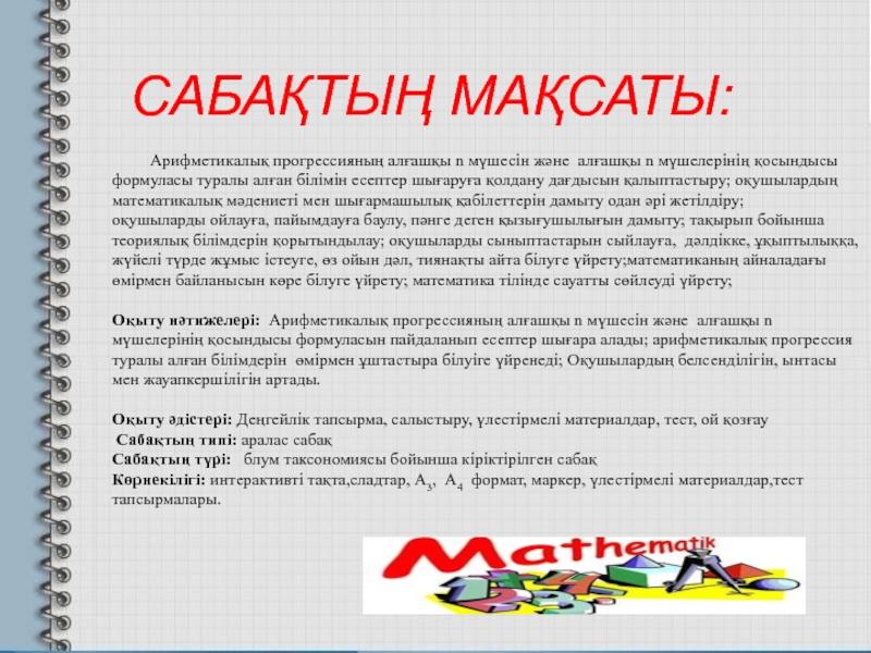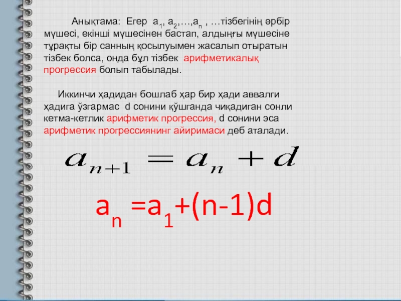 Арифметикалық прогрессияның n-мүшесінің қосындысының формуласы