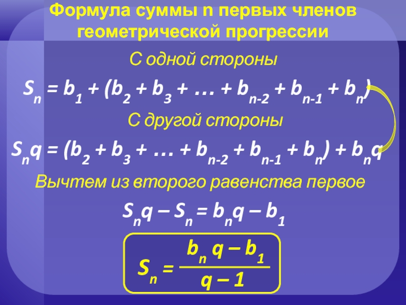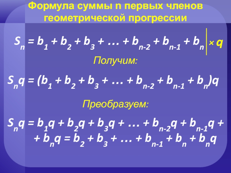 Snq = (b2 + b3 + … + bn-2 + bn-1 + bn) + bnq