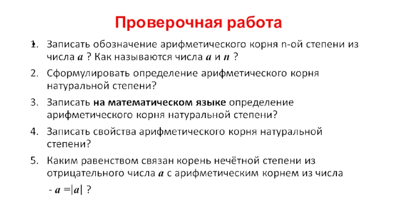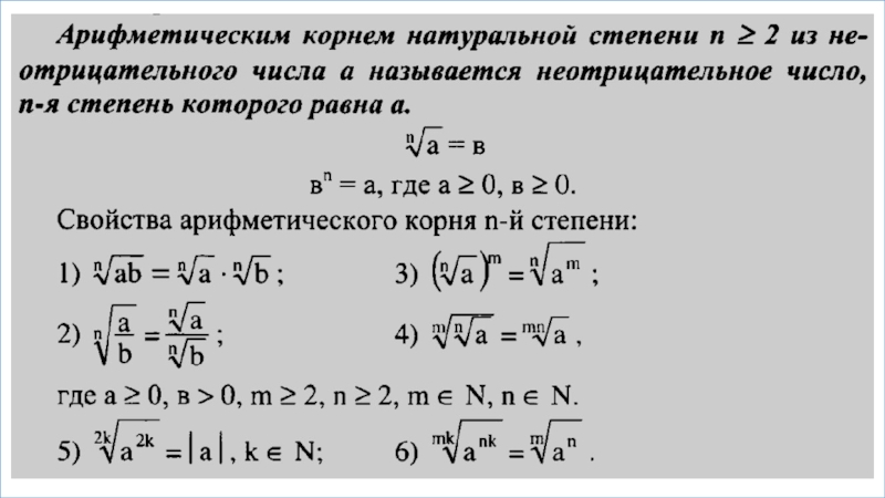 Презентация, доклад по алгебре на тему Арифметический корень натуральной степени