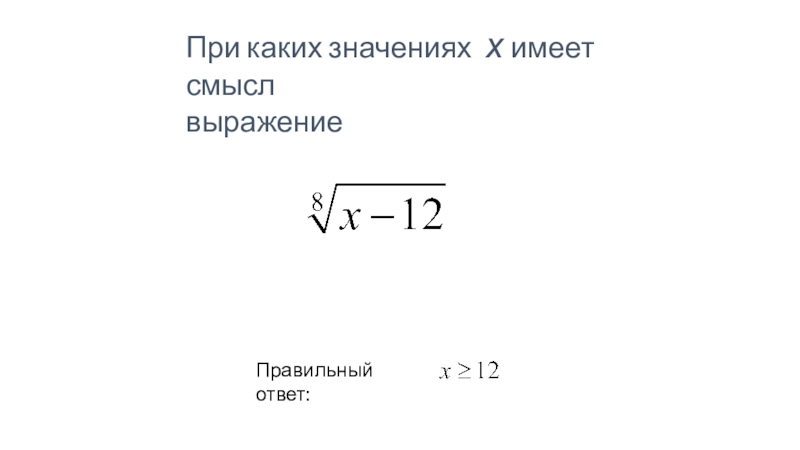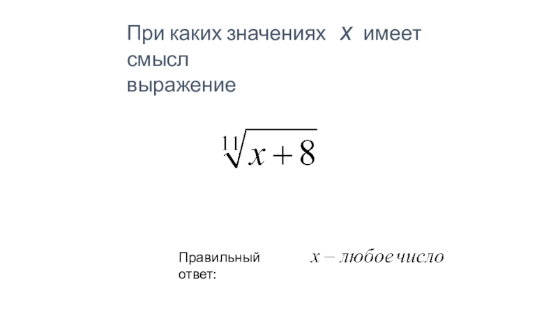 При каких значениях  х имеет смыслвыражение Правильный ответ: