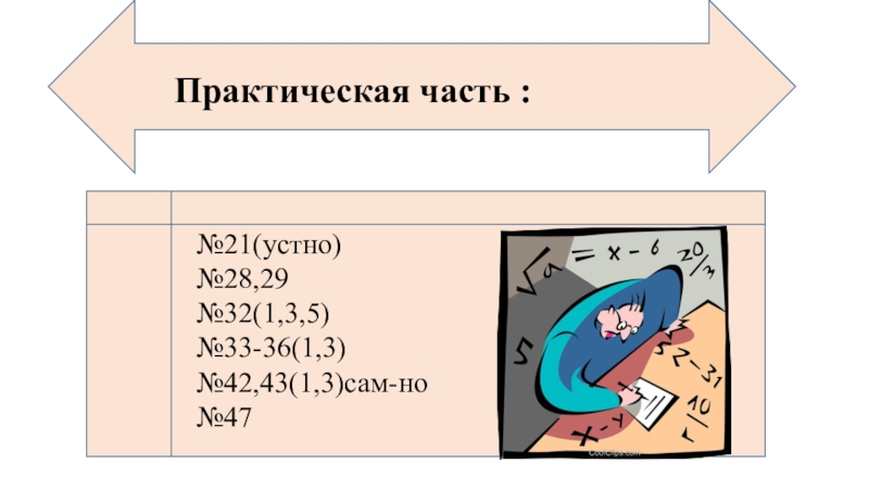 Практическая часть :№21(устно)№28,29№32(1,3,5)№33-36(1,3)№42,43(1,3)сам-но№47