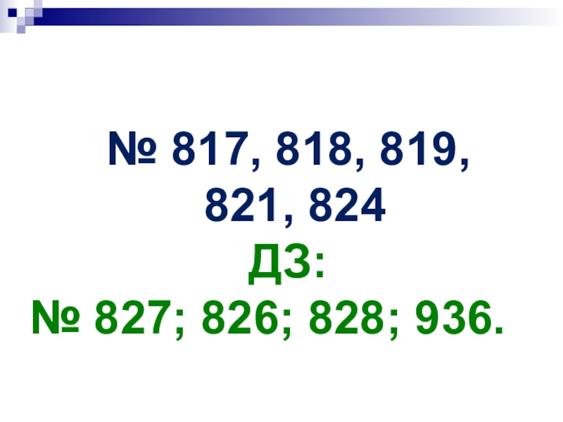 № 817, 818, 819, 821, 824ДЗ: № 827; 826; 828; 936.