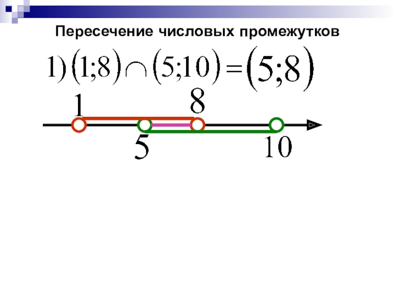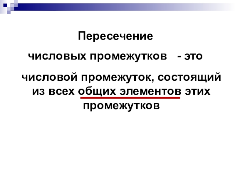 Пересечение числовых промежутков  - эточисловой промежуток, состоящий из всех общих элементов этих промежутков