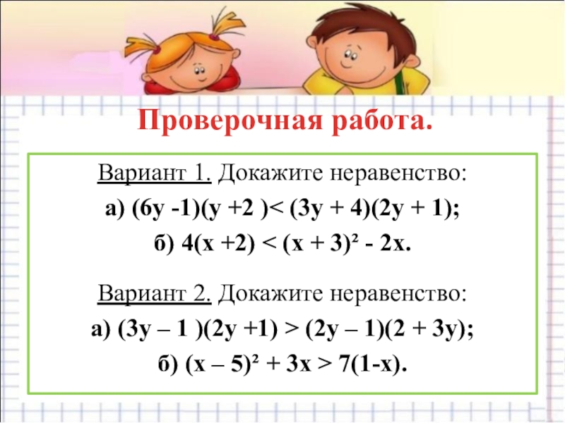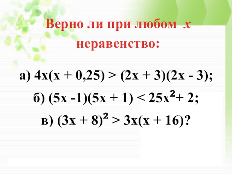 2. При любых значениях переменной ? сравните значения выражений: а) (?– 2)(?– 7) и (?– 4)(?– 5);
