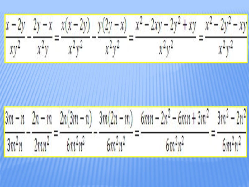 Слайд 3Сложение и вычитание алгебраических дробей
