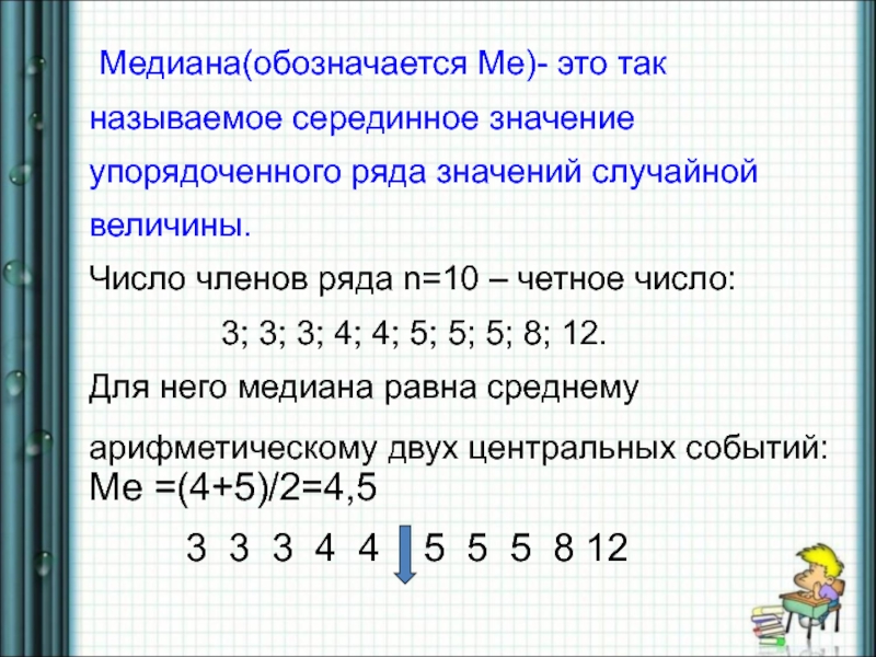 Слайд 11 Медиана(обозначается Ме)- это так