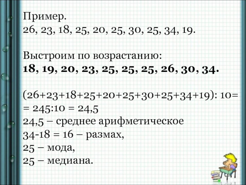 измерения, мода, размах, среднее