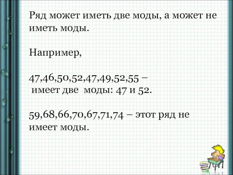 Слайд 14Ряд может иметь две моды, а может не иметь моды.