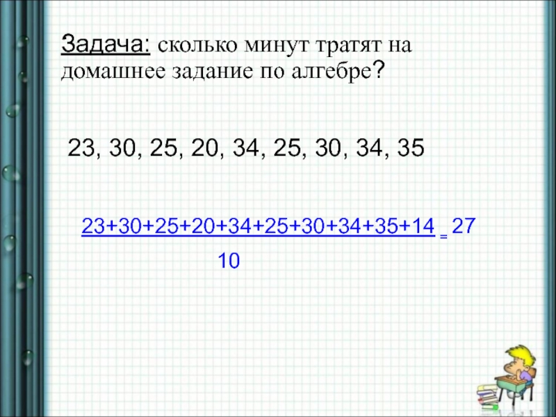 Задача: сколько минут тратят на домашнее задание по алгебре?