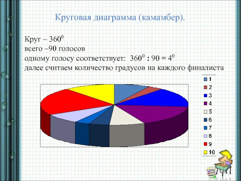Слайд 5 Круговая диаграмма (камамбер).