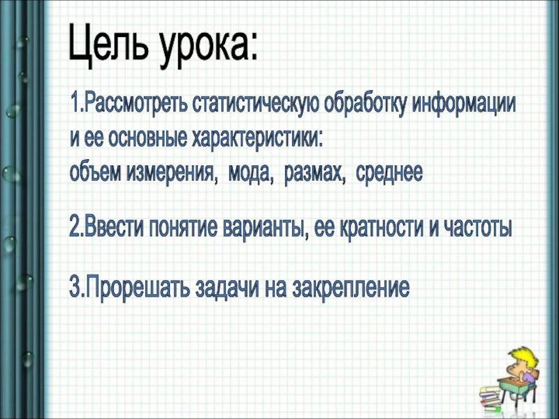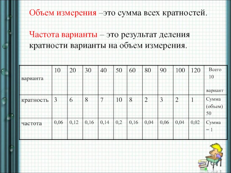 2.Ввести понятие варианты, ее кратности и частоты
