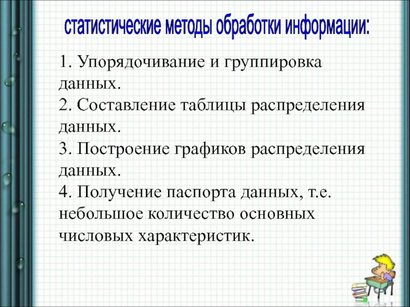 Слайд 6статистические методы обработки информации:
